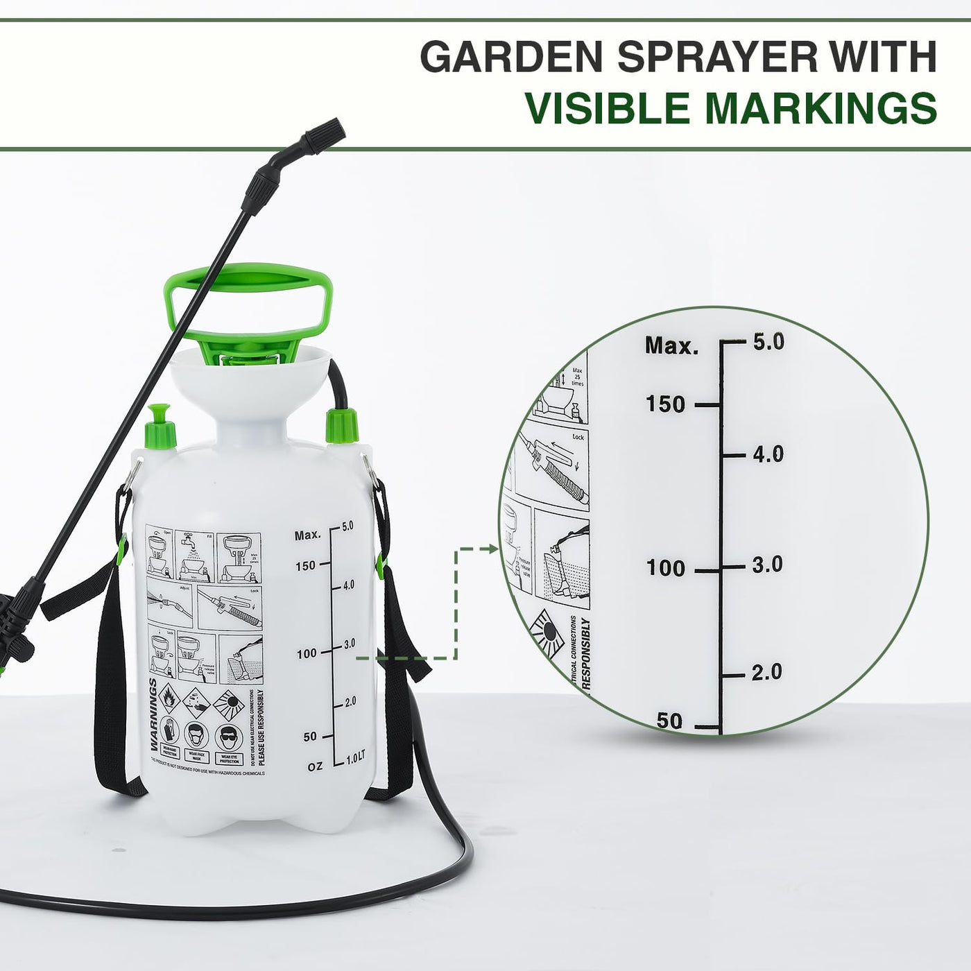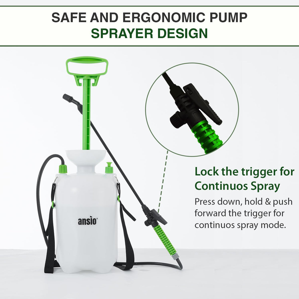 ANSIO® Garden Sprayer 5 litre Pressure Pump Action, Weed Killer,Water Pump Sprayer, Ideal with Pesticides, Insecticides, Fungicides.