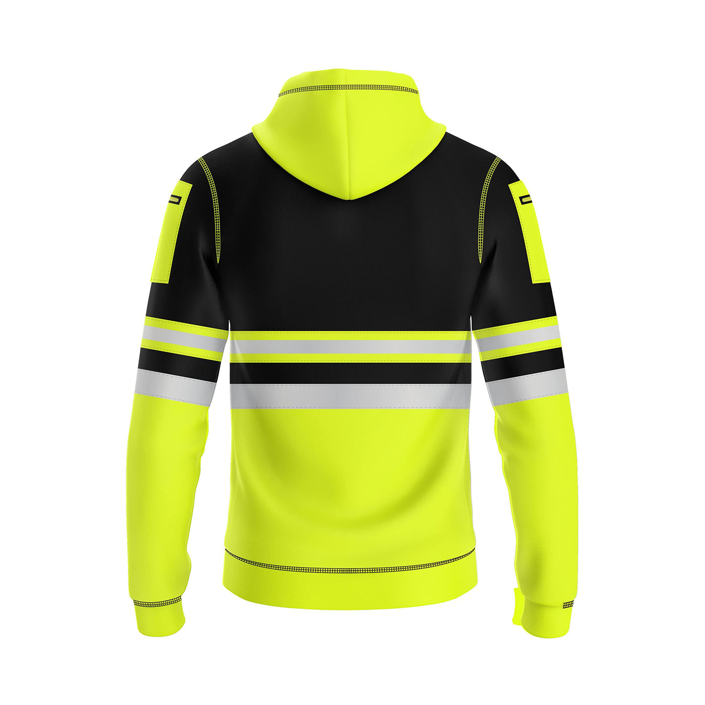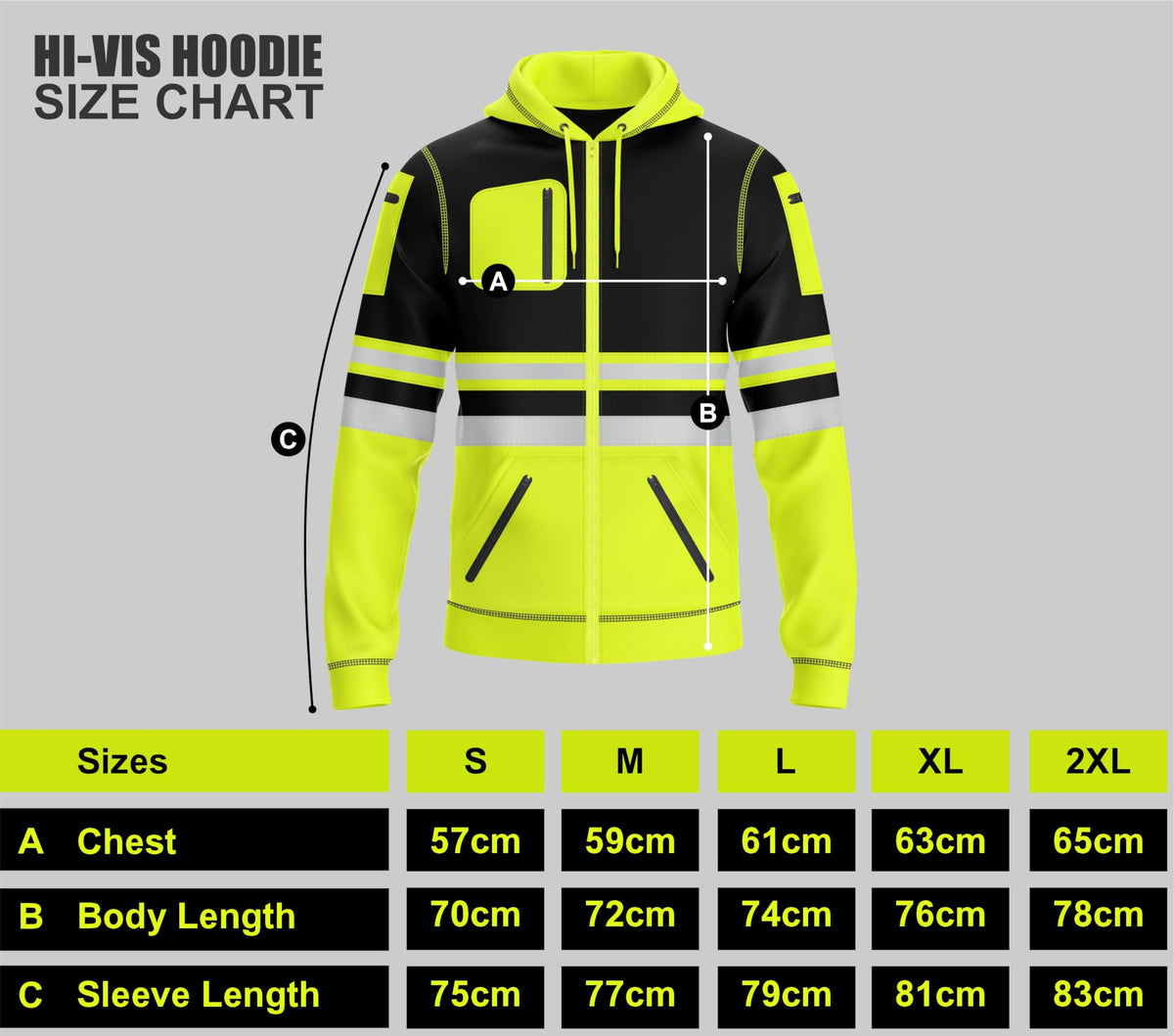 trending babz Mens Hi Vis Pullover Hoodie Reflective Tape Safety Work Drawstring Multi Zipped Pockets High Viz High Visibility Hoodie Sweatshirt
