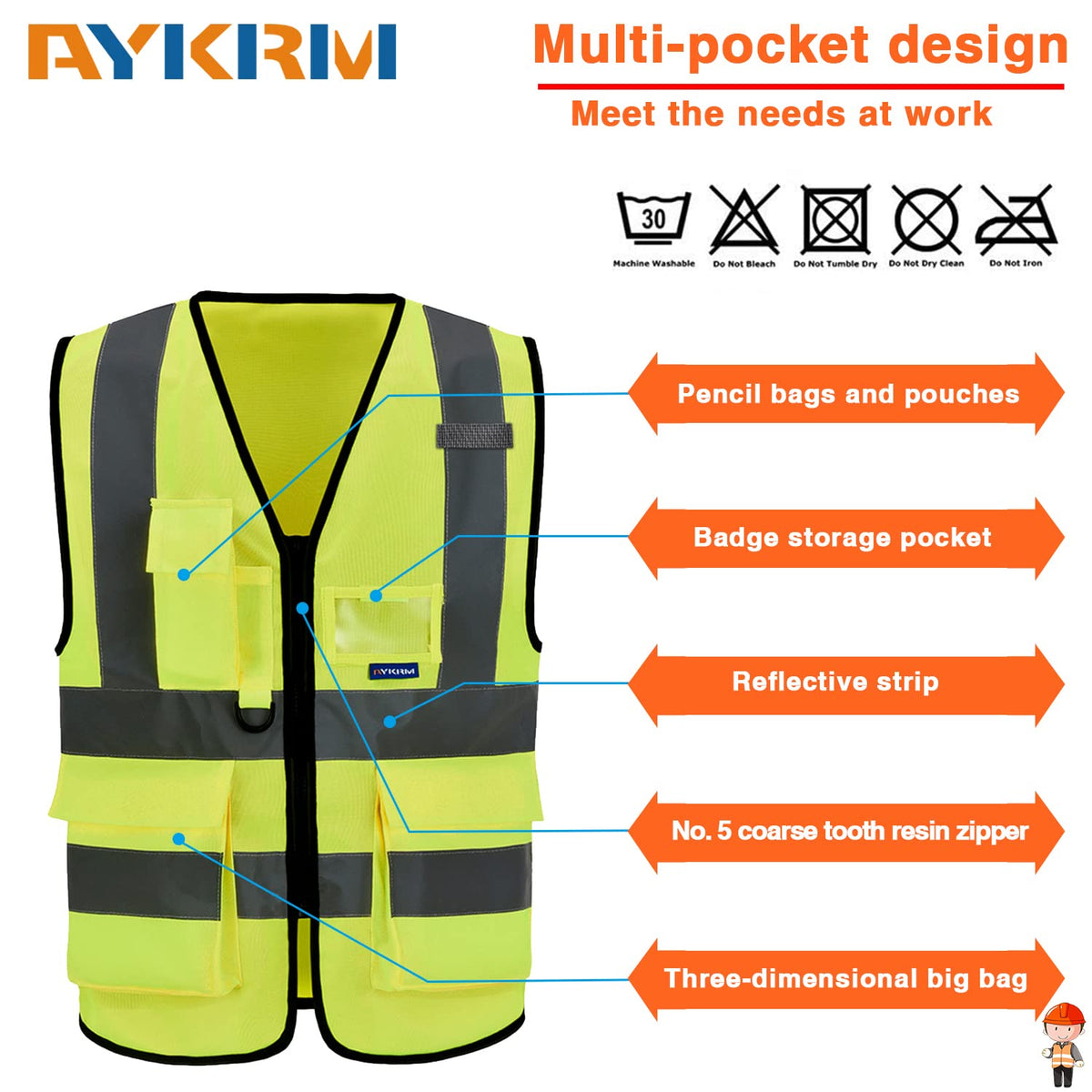 AYKRM Hi viz vests yellow high viz Class 2 hi vis Zipper Front High Visibility vest Hi Vis Executive Vest Waistcoat with Phone & ID Pockets