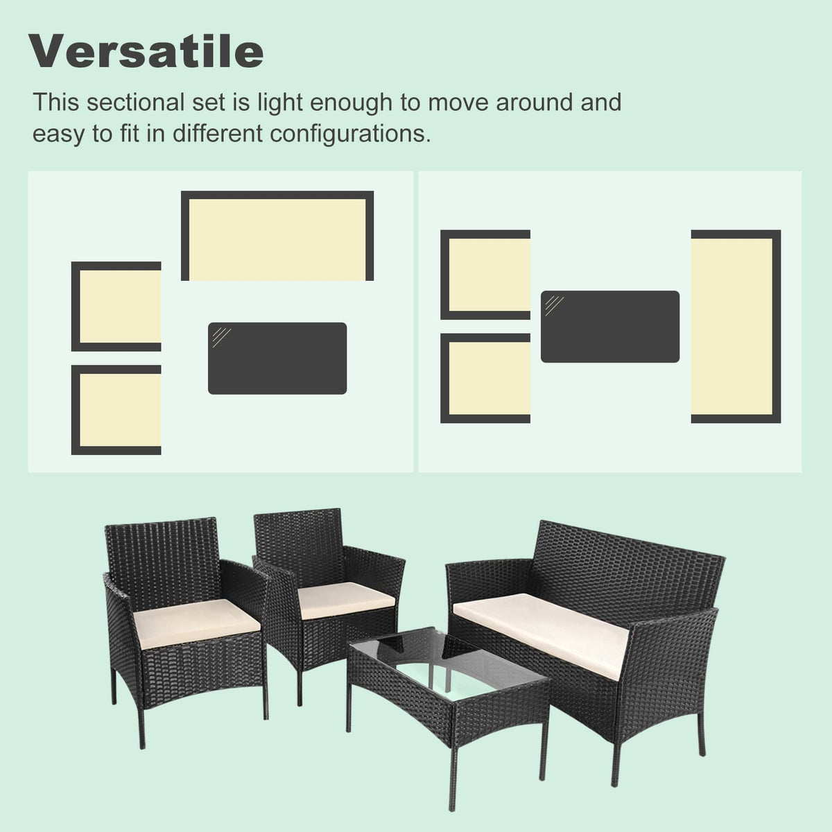 bigzzia Rattan Garden Furniture Set, 4 piece Patio Rattan furniture sofa Weaving Wicker includes 2 Armchairs,1 Double seat Sofa and 1 table (Black)