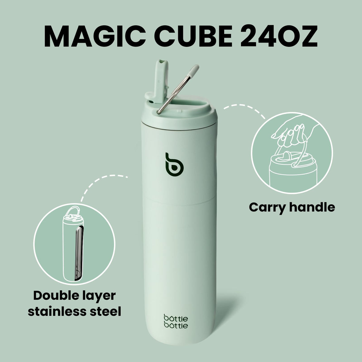 Bottle Bottle Stainless Steel Water Bottle 700ml with Straw and Lid Sports Insulated Metal Water Bottles with Handle(Light Green)