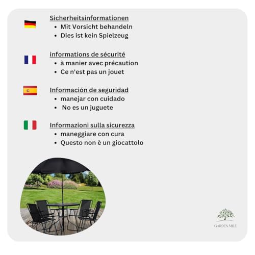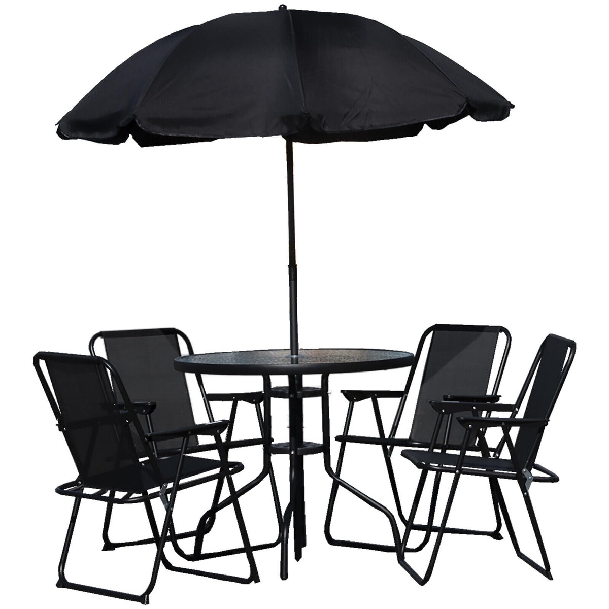 Garden Mile Patio Dining Set - Round 4 seater garden dinning set with Umbrella, 4 Folding Dining Chairs & Round Tempered Glass Table for Garden, Patio furniture or conservatory décor (Black)
