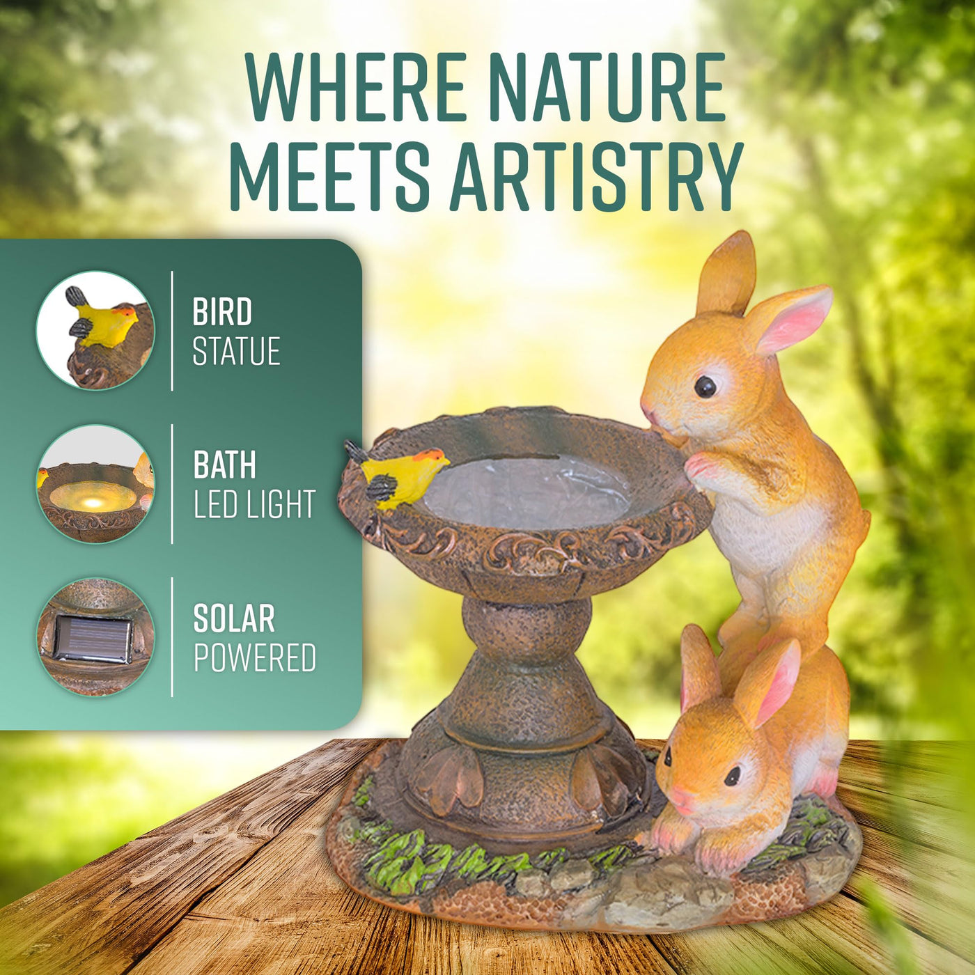 GloBrite Solar Rabbit Bird Bath for Garden | Outdoor Statue Gifts | Waterproof Resin Sculpture With Solar Lights for Christmas Decorations & Home Decor