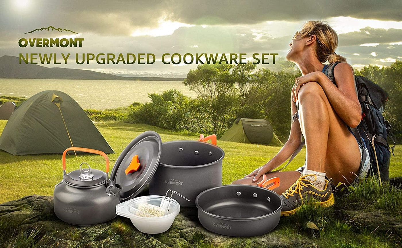 OVERMONT Camping Cookware Set Outdoor Cooking Kettle Mess Kit Pots Pans Ultralight Portable for Backpacking Hiking Picnic Fishing Mountaineering